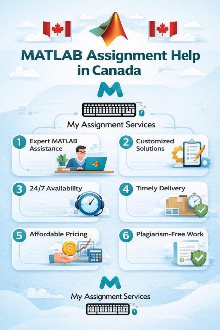 Expert MATLAB Assignment Help for Canadian Students This image highlights professional academic support designed for engineering, science, and data analytics students across Canada. It reflects accuracy, timely delivery, and expert guidance for complex MATLAB tasks, including simulations, coding, and problem-solving. With clear visuals and a study-focused background, the image emphasizes reliability and academic success, placing matlab assignment help in Canada at the center of quality-driven support that helps students meet deadlines, improve grades, and gain confidence in their coursework. Visit:- https://www.myassignmentservices.ca/it/matlab-assignment-help.html